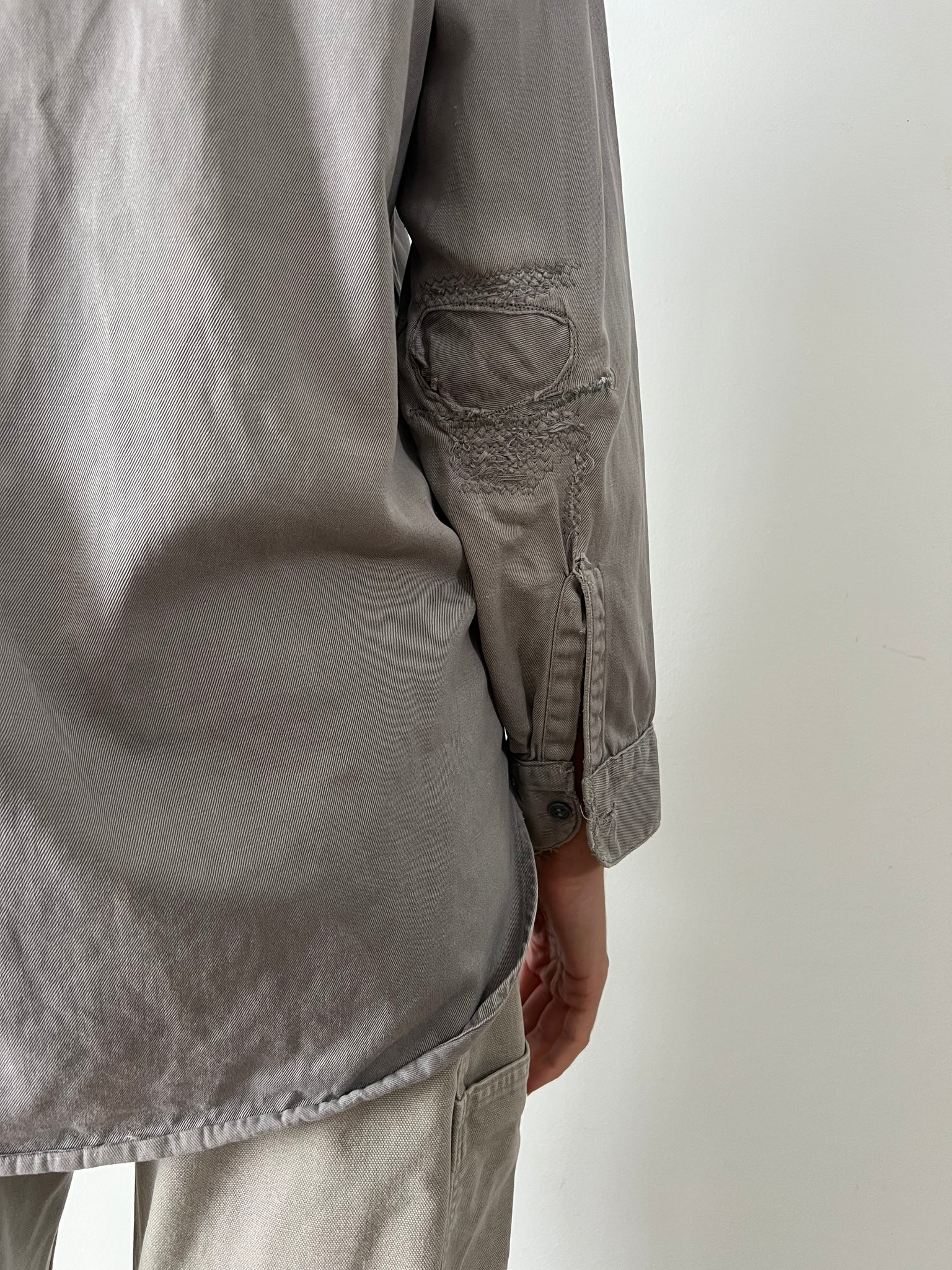 Condition: Excellent. A few repairs. Small hole where front pocket used to be.