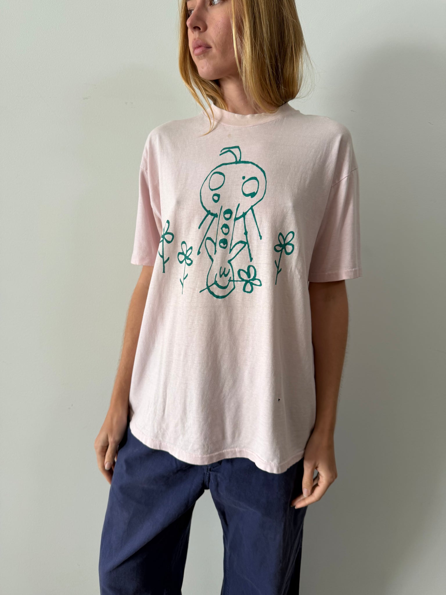 Condition: Great, a few holes + yellowing on collar. Soft.